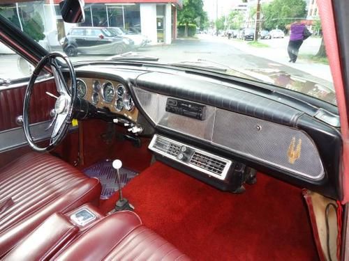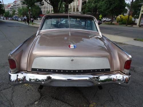 Very nice example of the Classic Gran Turismo Hawk. Local VA. car that has been in private collection for most of its life. Factory 'Avanti powered', one of 396 built in 1963 with the R1 Jet Thrust 289. Engine # is JT1028 and is original for the car. Also has factory 4 speed transmission with posi traction rear end and power steering, power disc brakes. Body is very straight with no rust issues and appears to be original color. Older repaint has held up rather well and car still shows very nicely. Interior is equally nice with the exception of one small tear in drivers seat. Door panles, dash, carpets, headliner, plus rest of interior seats are all excellent. Does have an after market tach and newer stero system but the rest seems very original and correct. All gauges function well and lights, signals work properly. A/C looks to have a newer compreesor and really works well. Engine is very strong with excellent compression and blows no smoke. Gearbox is also real nice with clutch and synchros performing wonderfully. Car is a real pleasure to drive and surprisingly smooth and powerful with nice brakes and superb road feel. Trunk is tidy with some surface rust under mat from sitting but could easliy be cleaned up. Has what looks like the factory spare still, plus jack and several boxes of spare parts. Wheels are in great shape and tires look nearly new. Underneath is solid with no major rust issues anywhere with pictures available upon request. Overall a very soild driver that is ready to enjoy as is or can be taken to the next level with not too much work.