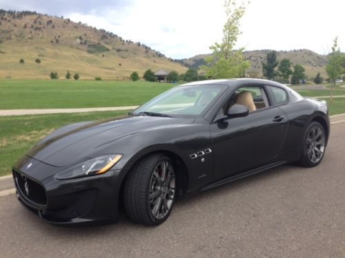 This gorgeous 2013 Maserati GranTurismo Sport Coupe stickered at $136,280.00. Was bought *NEW* off Maserati dealer lot by private buyer in April 2014. Changed financial circumstances require a sale now. Classy and sporty color combination: Grigio Granito (charcoal grey) exterior with Nuovo Sabb (tan) leather interior with grey upper dash, leather wheel and light grey headliner. Black carpet. Loaded with extras - a terrific deal on a near-new Maserati GT Sport Coupe! Only 1,700 miles. One owner - private owner/seller. Buyer pays any shipping costs.