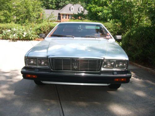 Hello exotic car lovers. We are selling our beloved and VERY rare 1986 Quattroporte with 22,000 original miles. This is the last year of the QPIII and is one of the best cars they made. This car is silver over tan (pumpkin) leather interior and nice tinted windows. The interior is in excellent condition, no rips or tears in the leather. Some minor spotting in the carpeting. All electronics work including the AC, it works great. All windows & lights work as does the remote trunk button. We just did a lot of maintenance on the car including AC system recharge, new rear door handle, oil change, tune up and much more. The paint is in very good condition, has a few tiny spots in the paint clearcoat on the roof but otherwise looks good. The car also has a few small dings that we are going to try and have removed before you pick the car up. This car has a 4.9 liter 288hp V8 engine with a Chrysler Torqueflight automatic transmission. The car is the fastest and best running QPIII we have ever driven. You could drive this car around the planet if you had a road long enough. It will run all day long and not overheat, even after sitting in 2 hours worth of Atlanta traffic. The only problem we are aware of is the hood struts will not hold the hood up and the interior hood release lever needs to be held to open the hood, it will not release both hood locks if you just pop the lever once. This is our 5th Quattroporte and BY far the fastest. It does have a custom sport exhaust and is pretty loud but sounds absolutely glorious. Everything works as it should. Car gets a lot of attention and people just love it. Runs and drives perfectly and VERY smooth. Tires are in good shape. Car has never had any body work or accident damage. VERY VERY rare car, less than 100 of them were brought into the states in 1986. Cost $70k in 1986! Many QPIIIs appeared in lots of movies in the 80s and 90s. Its an amazing and fun car, folks love this car we get tons of thumbs up and smiles. We are Maserati Club Members and are multiple exotic car owners. The ONLY reason why we are selling it is because my elderly Dad cannot handle the car safely anymore. We have attended many car shows and Maserati and Ferrari Club events with it and its a hit everytime we show it! Its got a clear title and a crystal clear Carfax report. You are welcome to come see the car and drive it. If you need more pics, please let me know. Car comes with tool kit, spare wheel, service receipts and some owner's/workshop manuals. |
