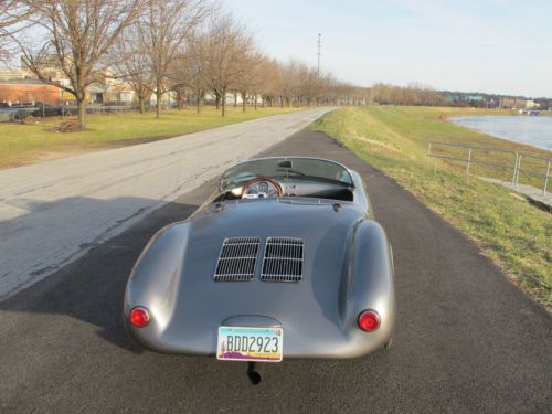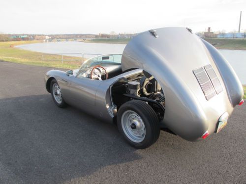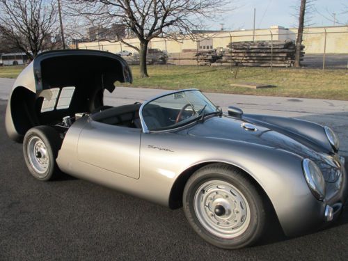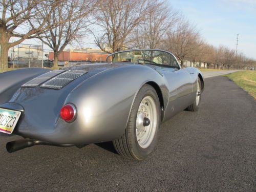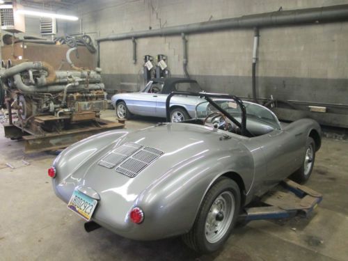 This Porsche 550 Spyder replica is brand new with under 300 miles since finished last fall. This is a professionally built car that runs and drives flawlessly and needs absolutely nothing. It is a Vintage Spyders body and tube-frame chassis, which is by far the best available. The engine is a 2005cc CB Performance crate engine, making 145 horsepower, which is slightly more than the modified engine James Dean had built for his 550 Spyder. The car has adjustable-valving Bilstein coilovers in the rear and adjustable torsion bars in the front, so the car can quickly be set up for track days by a couple turns on the shocks, swapping the street wheels and tires for slicks, and bolting in the included SCCA- legal rollbar. It is currently set up for street driving. The stiff tube chassis, mid-engine design, 4 wheel disc brakes, and tight steering make the car an absolute dream to drive on the street. The suspension is soft enough to absorb most bumps and potholes around town, yet stiff enough to make you feel in control and predictable at speed. This car has under 300 miles on it with a professional mechanic behind the wheel. Rest assured this car is well-sorted and will be a great and reliable car for years to come. When you see this car up close in person, please take note of the incredible attention to detail, the perfect door gaps and fitment, the subtlety of the color and the quality of the paint work, and the world-class fit and finish throughout. This car was built without regard to budget using the best parts available by some of the most qualified experts in the country.