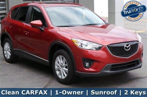 Priced THOUSANDS below New - This CX-5 has the Touring Package, Clean CARFAX and only ONE Previous owner who took excellent Care of it! SKYACTIV technology means it has plenty of juice and still gets 26 City/ 32 Highway miles per gallon! Equipped with MOONROOF, Bluetooth, Cruise control, AUX/ USB Inputs, TWO Keys and push-button start! We priced it way BELOW Kelley Blue Book Value with NO Dealer fees or doc fees! Come drive it - you'll like it!