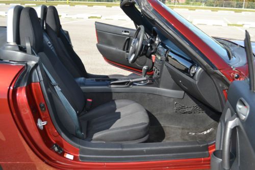 This MX-5 Sport Convertible edition comes standard with the following features; 2.0 liter inline 4 cylinder DOHC, 16 valve engine with 6 speed automatic transmission, ABS, front air bags (with manual shut off for passenger air bag), side impact air bags. It has power windows, power locks, power mirrors, tilt steering wheel, cruise control, delay wipers, A/C, am/fm/CD/Satellite capable stereo with steering wheel controls, fog lights and 17” Yokohama Parada Tires. This Mazda is a Florida car and has been very well