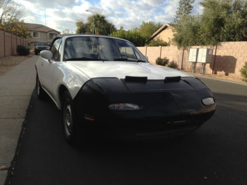 1990 Mazda Miata (first year in production). In excellent condition. Driven by my grandparents to the grocery store and back once a week, otherwise garaged. Inherited the car from them and have kept it garaged and maintained, only drive to keep in good condition. Need to sell now because it's a two seater and we have two kids, so it takes up space in the garage. I love this car - it's a thrill to drive with the top down on a sunny day.