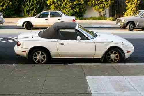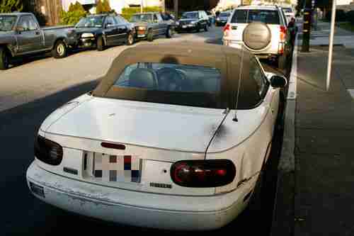 I'm selling my trusty 1991 Mazda Miata. I'm the original owner, bought it new in 1991, and the fact that it's lasted this long has amazed me. This has been my everyday city car in San Francisco for more than 20 years. For about 15 of those years this car was garaged. Since 2001 I've worked at home, so I've been putting about 7500 miles or less per year on it.