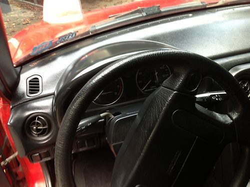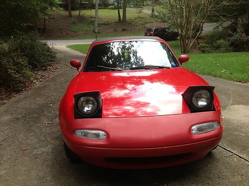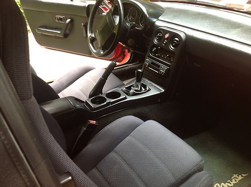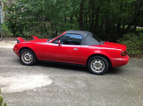 One owner car. Bought new in 1992. Current mileage is 161K. Red exterior with black interior. Black cloth bucket seats and dashboard are in great shape. Convertible top has a glass rear window, both are in good condition. Manual 5 speed, air conditioning and AM/FM stereo. Tires are in good condition. Engine has been well maintained and runs great! Oil has been changed every 3K miles.
