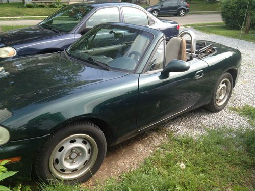 I am selling my 1999 Mazda Miata. Its a perfect car for anyone who loves feeling the wind through their hair or does not like the confined shell of a car. When I bought the car, it was completely stock. I have since put in power windows, power locks, a roll bar and a cd player that connects via Bluetooth with your cell for hands free talking or connecting for music through your iPhone. (Works with iPhone 3GS, 4 and 4S. Unknown for other models and brands) The head unit also has an AUX in port for other audio devices. British Racing Green exterior color with black interior and a tan top. Tan seat covers will come with the car.