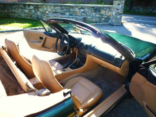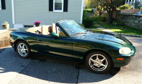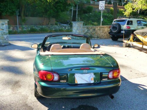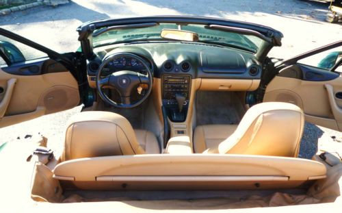 MAZDA MIATA Automatic 1999 Miata. Second generation model. All options, Bose, ABS brakes (yes option in that year), anniversary addition factory 15" wheels (stock is 14"), CD, AM/FM, leather seats, Nardi steering wheel, AC and auto with OD trans. Adult owned all it's life. I am the second owner. Original owner was a senior women who bought car brand new and always serviced with Mazda. I bought (senior also) 1 1/2 years ago and just don't drive it. Has 104k on it. I did 1500 miles. Has brand new tires and battery (200 miles). Timing belt was changed at the 99k recommended by Mazda and done by them. New radiator, tune up and brakes all around. No rust. Very great cond. No rips in interior. Very small rip in top that was repaired by a proffessional upholstery shop and doesn't leak. Has one small chip on rear bumper. Blast to drive. Please ask all questions. |