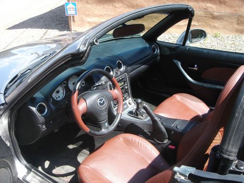 Low mileage Miata, Titanium Gray, Cognac leather seats, 6 speed w/SR Motorsports short shifter, Hard Dag M2 roll bar, BBS custom alloy wheels, Racing Beat front sway bar, Tokiko shocks & springs, R1 rotors & SS brake lines, RB hi-flow air intake, RB 4into1 SS header, Ravenswing SS free flow mid-pipe, RB SS performance muffler, Robbins premium tan top and new JVC stereo w/ Bluetooth, USB, 2.5mm jack, Clearwater speakers. This car has never been raced or abused.