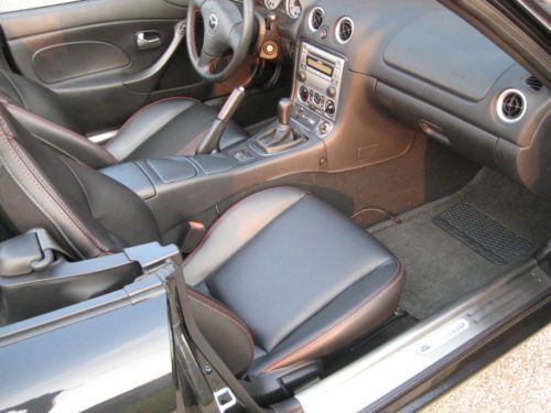 Black Mica paint only made in 2005. This is the Grand Touring model every option. Cloth top, leather seats with red stitching, Bose stereo. The Mazdapeed Miata was very special, approximately 40hp more than a regular miata, 6-speed, special heavy duty drivetrain, special bilstein shocks, springs etc. Racing Hart 17 inch wheels. 6 speed manual transmission. I have owned this car for 5 years I bought it with 2,700 miles on it, now it has 8,952 miles, most of the miles are highway miles. Surely one of the lowest mileage cars and collector quality condition. This car is bone stock, no mods ever which is very rare for these cars. It has never been tracked, raced, or auto-crossed. Mazda engineered these cars to last but everyone wants to boost their performance. This car has been babied by both owners. Always garaged, no winters ever. This car is in excellent condition no dents scratches, no paint work ever other than minor chip repairs, VIN stickers on every body panel. Properly maintained, no issues. I have the window sticker, both (2) remotes/keys, brochures, owners manuals, original unused floor mats and top boot. The unused space saver spare tire, jack and tire lug wrench are in the trunk. Payment by winning bidder within 7 days by bank wire transfer only, no cash in person I reserve the right to end the auction early as car is for sell locally. Shipping to be at buyers expense local pickup welcomed. The Bose stereo has a special (aux/mod) i-pod mini stereo plug for your various personal music devices. I just ran a clean 2 owner car fax on this vehicle which I will be happy to provide. Please do not contact me asking for my bottom dollar price, look at the starting auction price, this car is worth the money to a collector like myself. call with questions: 8onetwo 2fourzero97six6 Also, this is last year of the NB series Miata it has a larger trunk capacity but still has a spare tire/jack/tools so you can change a flat and get home when you are out touring. The 2006 and newer miatas have no spare. You can easily fit 2 roll airline type suitcases in the roomy trunk and more for a weekend trip. Thanks for looking, happy bidding. |