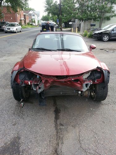 THIS IS A 2008 MAZDA MIATA MX5 SPORT CONVERTABLE. IT HAS A NEW JERSEY SALVAGE TITLE . THE ENGINE IS A 2.0L 2000CC 122Cu. In. l4 GAS DOHC Naturally Aspirated ENGINE WITH A 6 SPEED MANUAL TRANSMISSION. STOCK SUSPENSION WITH THE STOCK 17INCH WHEELS. THE VEHICLE DOES RUN AND DRIVE.