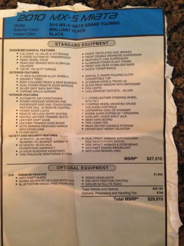2010 Mazda Mx-5 Miata Grand Touring Black Convertible 2-door 2.0l 10k Miles on 2040-cars
