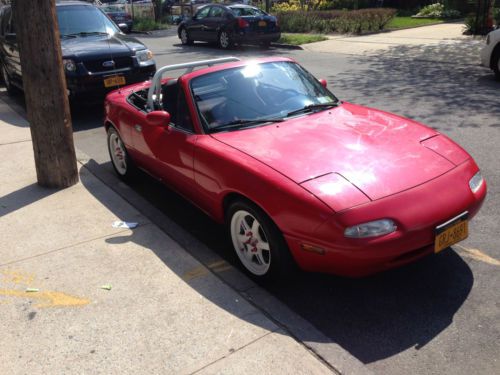 The car was never driven in winter and has little to no rust. I'm the 3rd owner and have it since 2011. Bought it with 62k on the clock and only put another 4k miles in 3 years on it. Car was bought completely stock (other than short ram intake) from a gentlemen in his 50s who had 4 more other cars and was driving miata on a very rare occasions. The original owner was his friend who owned it for the first 3 or 4 years. The car is in a really good shaped - the one you would expect from a car with just 66k, never driven & garaged in winter through it's entire life and well taken care of. The car is my joy ride which I basically only drive on the weekends. The only thing that needs attention is paint - I polished the car after I got it and the paint layer became very thin so the car currently has a few minor scratches here and there. There are a couple of minor dents as well. I was looking to repaint the car entirely, so the issue wasn't addressed. The car will be sold with a factory hardtop which also has some paint chips. There was no corners cut or expense spared maintaining or modifying the car. I purchased the car as I always wanted cabriolet for the summer. Then I made a few mods to make it more enjoyable to drive. The car had never been to track or auto-x. I had all modes documented on my old pc, but HDD died and I never recovered the list so I might be forgetting something. All modes were professionally installed by a good friend of mine who is a well known mechanic & diagostics specialist in my area. Maintence: - Oil changed every spring at the beginning of the season with full syntetic mobil 1 5w30 - Timing belt (oem), spark plugs (NGK irridium), spark plug wires (NGK), brake fluid (motul rbf600) & battery (oem) were replaced when I got the car in 2011 Modes list (all modes were done by me and have less than 3 years / 4k miles on them): - Rays engineering Volk Racing TE-37 15x7 white rims with 205/50/15 Dunlop Direzza Star Spec tires (purchased in 2011, have around 4k miles on them) - Rays red valve stems, Rays Formula hub caps, Rays extended red lug nuts - Boss Frog Clearview Single Hoop rollbar painted flat white - NB 6-speed Mazdaspeed Miata transmission purchased with around 25k miles on it, currently sitting at around 28k - NB 4.1 limited slip rear differential with currently around 5k miles on it - Energy Suspension rear diff bushings - Mazda competition motor mounts - 949 Racing Twin Disc organic race clutch - Upgraded clutch master & slave cylinders, stainless steel clutch hose - Flyin' Miata cannon rear subframe brace - Flyin' Miata full butterfly brace - I'm probably forgetting something since the original mode list is gone |