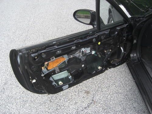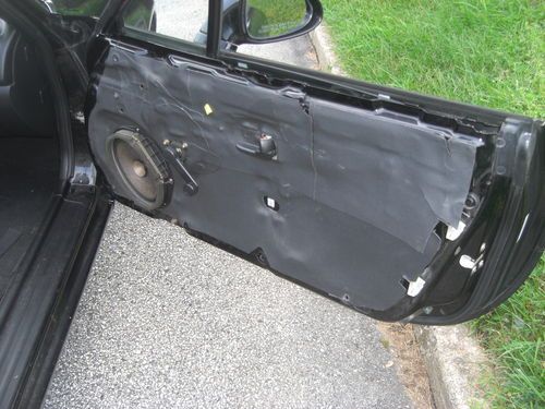 The door panels and some of the carpet was removed so the aluminum seats would fit. We DO NOT have the original seats or door panels. No carpet in the trunk. The top has a few holes in it and still has the glass rear window.