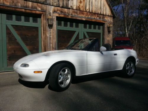 This is an extremely nice Miata with only 36,163 original miles. It has a 5 Speed manual transmission. Just professionally repainted including all of the jams, not just a tape job. The car has never had any rust. The original paint was just starting to fade. Top was replaced a few years ago and is in mint condition. Custom radio insert with custom IPod dock and Alpine radio. This car has rarely seen rain and never seen a winter. The brakes have been completely replaced and are brand new. This will be the most reliable car you will ever own. It comes with two sets of wheels and tires. This is a must see and will not last long. A Miata in this condition with such low miles is a rare find. |