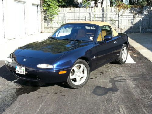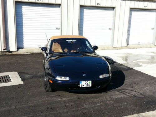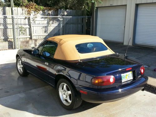 Up for sale is my 1996 Mazda Miata M-Edition Special Starlight Mica Edition. It is in excellent condition and drives like new. The two-part zippered, glass-back convertible top is 13 months old, the Yokohama high performance tires have about 2000 miles on them, and the brakes are new. There have been 3 owners - an older lady that kept it in texas in a garage for most of its life, a couple in Navy bought it when they transferred to Europe just to drive it in the Alps. I bought it from them and have kept it in a storage unit. The timing belt and water pump were replaced 20k-25k miles ago by the previous owner. The clutch has not been replaced; however, it grabs great and never has a problem. The paint is metallic, original, and looks amazing. There are a couple chips and dings in the paint typical of a 20 year old car. The most notable is included in the pictures. The interior is in great condition. Leather interior loaded with cruise control, power windows, door tweeters, and headrest speakers. The car runs like a top and doesn't drop a drip of oil or anything. If you have any questions, just let me know. The last 3 pictures are the flaws in the paint. The color doesn't really show in the pictures. It a dark purple/midnight blue look. It looks great. I don't want to sell the car, but my wife wants new cabinets for the house. The car is sold as is with a clean title. No accidents. I require a 250 deposit within 24 hours. If you need to ship the car I can meet the driver or come fly in and drive it back home anywhere - it runs that good!