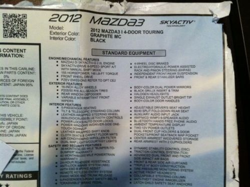 2012 Mazda 3 Itouring with skyactive technology in excellent condition...runs great and has had regular maintenance, only 10,141 miles..bluetooth capability and great gas mileage, it gets around 40 mpg, clean title, we bought it new so we are the only owner..it has Bluetooth and steering wheel controls, and many other features, I included a picture above that lists them.