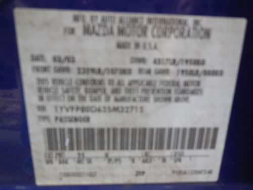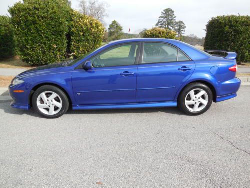 FOR SALE IS A BLUE ON GRAY 2003 MAZDA 6 SPORT WITH ONLY 84K MILES! IT COMES EQUIPPED WITH A V6 ENGINE AND IT FULLY LOADED. THIS VEHICLE HAS A CLEAN HISTORY REPORT(SEE ATTACHED) AND MECHANICALLY SOUND. AS YOU CAN SEE FROM THE PHOTOS, THE VEHICLE IS NEARLY FLAWLESS IN AND OUT AS IT LOOKS LIKE IT JUST CAME OUT OF THE SHOWROOM. THIS VEHICLE IS DENT FREE AND HAS NO MAJOR SCRATCHES. ALL RECENT SERVICE HAS BEEN PERFORMED AS THIS VEHICLE IS ALL READY TO GO. YOU WONT FIND A NICER 2003 MAZDA 6 OUT THERE! PLEASE CALL 706-737-1148 WITH ANY QUESTIONS. WE OFFER EXTENDED WARRANTY PROGRAMS AND WILL ASSIST THE BUYER WITH NATIONWIDE SHIPPING MAKING THIS A HASSLE FREE BUYING EXPERIENCE. SPECIFICATIONS Exterior Measurements