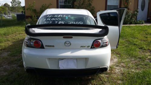 Beautiful 2005 Mazda RX8 touring edition coupe with 4 doors.Pearl white paint, no body rust, few dents&some sun fading on front spoiler. Mazda speed springs and shocks all around with new tires. Interior is custom black with normal wear . Low mileage 84,379 original. Listed at $4,000 below blue book price. Excellent car, excellent value and a definite head turner.