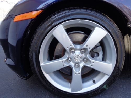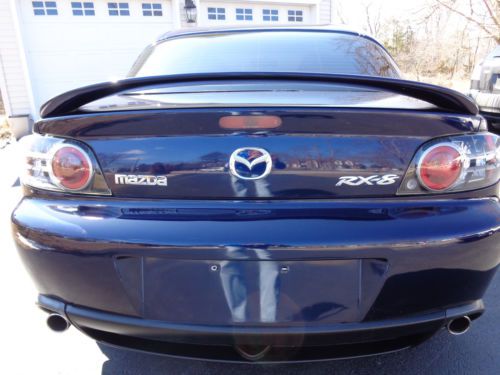 2007 Mazda RX-8. It is nicely equipped with features such as RX-8 Sport, 1.3L Rotary 232 hp @ 8500 RPM, 6-Speed Manual with Overdrive, BLUE NAVY, 4-Wheel Disc Brakes, 6 Speakers, ABS brakes, Air Conditioning, Alloy wheels, AM/FM radio, AM/FM Stereo w/Single CD Player, Bumpers: body-color, CD player, Cloth Seat Upholstery, Driver door bin, Driver vanity mirror, Dual front impact airbags, Dual front side impact airbags, Four wheel independent suspension, Front anti-roll bar, Front Bucket Seats, Front Center Armrest, Front reading lights, Illuminated entry, Leather Shift Knob, Leather steering wheel, Low tire pressure warning, Occupant sensing airbag, Outside temperature display, Overhead airbag, Overhead console, Panic alarm, Passenger door bin, Passenger vanity mirror, Power door mirrors, Power steering, Power windows, Radio data system, Rear anti-roll bar, Rear seat center armrest, Rear window defroster, Remote keyless entry, Security system, Speed-sensing steering, Sport steering wheel, Steering wheel mounted audio controls, Tachometer, Tilt steering wheel, and Variably intermittent wipers.