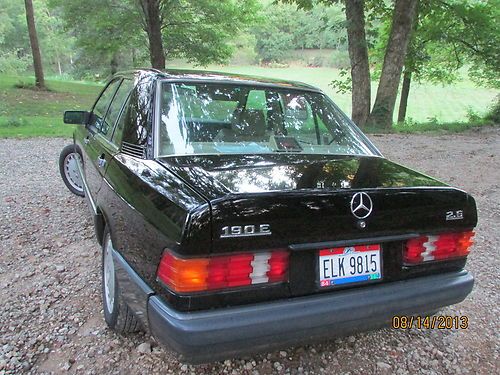 91 Mercedes Benz 190E 2.6l 6cyl , auto , gasoline, We are the 2nd owner of this vehicle, purchased it 5 yrs ago. Black exterior, cream leather type interior, Power seats, head rest and sunroof. Alpine stereo w/cd player, removable face plate and remote control for stereo. Factory fog lights, heated mirrors, heated windshield washers, rear defrost, cruise, rear fog lights, A/C. It has been garage kept in the winter and driven in the summer. This car is in great condition for the age. High book is $7,000 low book $3,700. asking $4,500 OBO