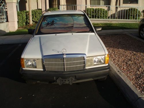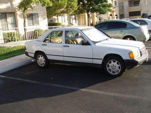 1988 Mercedes 190E for sale by owner:: Just 116,907 actual miles, white with tan leather, clean smog in hand, clean title in hand, power windows, power door locks, sunroof all work great. Cold air conditioning. Good tires and brakes, runs great ready to go wherever. radio does not work and I don't know why? It's the original Becker radio cassette combo. This car is now considered a classic and qualifies for classic plates at least here in Nevada anyway. Cheap clean transportation for cheap money. Low reserve. No rips in leather, clean headliner with no rips or tears or stains, door panels are nice,carpet needs cleaning, couple cracks in the dash pad but covered by a dash cover looks good as is. Cheap car for cheap money. Call me at 702 762 3432(PDT) with any questions. Cash in person or US postal moneys orders for payment only. NO PAYPAL. Pay me in five days from the time the auction ends. My rules are simple so follow them for a seamless transaction. Can't adhere to my rules don't bid then okay. Sold as-is no warranty expressed or implied. You are buying a 25 year old classic that runs great but once you leave it is your responsibility. Simple!! Good luck.