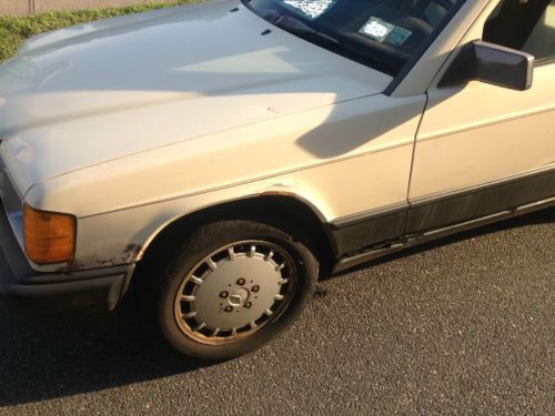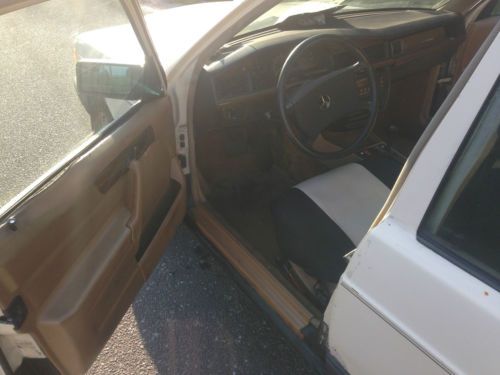 up for auction 1985 diesel Mercedes benz 190d 190 D I bought this car looking to restore a few years ago from a dealer in NY has served me well and wants a new loving home has been serviced as it should it runs and drives well trans shifts as it should... never had a problem starting at all cold weather or hot... little to no smoke... gets high 30s (37) in mpg 4 cylinder strong diesel It has had injector pump rebuilt springs seals etc.... Gas prices are up diesel is the way to go let me educate some of you no plugs or wires to change so savings$$$ longer oil changes 5000 miles on avrg can go to 7000 but not advised so savings there if the cars is running does not need battery n if its running it stays running... at the pump diesel is more by like .50 cents sometimes but most cars get in the 20s mpg this gets in high 30s almost 40 mpg so double the mileage then gas so 2 gal of gas equals 1 of diesel n most cars n the 200k mileage range are going to need to be rebuild a diesel is just broken in at that number and will go easy 400k plus some even 500k so built for longevity I also have listed on CL local so please come take a look able to ship or deliver car reasonable distance please call for that info and estimate 631 459 6905 plz call about car only at a reasonable hour EST thanks Tom many new parts installed and lots of extras if u do not want extra body parts let me know shocks / struts n mounts, wheel bearings, center bearing, trans mounts, glow plugs, timing guides, etc.. some steering parts, brakes rotors, seat covers you get the idea its been cared for not just left to sit... lets go over the car interior the headliner good seats good(driver seat is worn thru in spots n shows wear see pics) dash lites work gauges work sunroof does not leak n does not open motor works runs but does not open wood plastic missing on climate control for fan a/c not working common on MB cars... heat works radio / speakers work power windows front good rear are frozen stuck carpet is good on floor pass side has to be cleaned see pic... dash has heat cracks minor also common on MB they make carpet mats for that.. the power door locks do not work needs pump told $50 est part driver pass open with key.. driver door lock should be replaced because the door lock drops a little when open so u need key to open could be adjustment also odometer has stopped also common for MB i have pic of when car turn 200k n used only for work so mph works just od hung up told cable problem exterior looks good for its age has a few rust spots see pics tires have a little life left full spare n jack some spots have been touched up driver front fog light has cracked lens with clear plastic replace est $50 to upgrade to newer for both is like $125 solid light euro model thinking of doing that did not get around to it... the hood latch stock is plastic has been replaced with metal pull one... the car has some rust spots all over have some pics plz look...i have the emblem people like to take them lol.... there is alot of aftermarket parts for this car to give it a newer look if you like... If interested I have all 4 doors some with glass door locks handles etc see pic a hood and a driver side fender like i said was going to restore car see pics car has good inspection and have added a pic of odometer when it rolled 200k b4 it stopped ... at end of auction would like $200 deposit paypal or other means etc... but full payment on pick up with in 48hrs ... contact me for any arrangments thanks I will also include all little parts i have window motor filters I have 2 cleanable reuseable secondary fuel filters fuses and other stuff i find that can go with the car