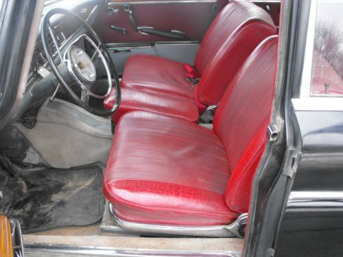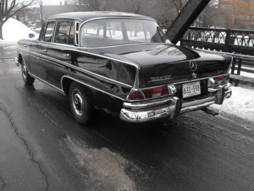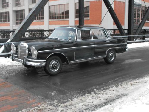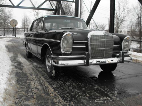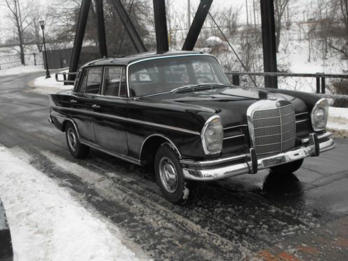 UP FOR AUCTION IS A 1965 MERCEDES 300 SE 4 DOOR SUNROOF HECKFLOSSE, SHOWING 82,079 MILES ( TRUE MILLAGE UNKNOWN ) SPEEDO NOT WORKING,IN STORAGE FOR MANY YEARS. RUNS, AND, DRIVES.CLY HEAD REBUILT ,AIR RIDE,4 WHEEL DISC BRAKES, TRANSMISSION SHIFTS AS IT SHOULD ,VERY NICE INTERIOR, SUNROOF HAS MINOR RUST IN LOWER QUARTER PANELS .WITH MINOR REPAIR WOULD MAKE A GREAT DAILY DRIVER. WATER PUMP SEAL LEAKS,HAS AFTER MARKET FUEL PUMP. FRONT RIGHT BRAKE STICKS SHOULD HAVE A MAJOR SERVICE BEFORE DRIVING.SOLD AS IS WHERE IS, BUYER PAYS ALL