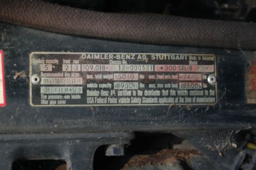 1969 Mercedes Benz 300SEL 6.3 Rare and Desirable Sunroof 6.3! Complete Project. No attempt has been made to start this 6.3 as it has sat for several years. An Excellent 6.3 for Parts or to build your dream w111 6.3 Coupe. WE HAVE OTHER CLASSIC MERCEDES AVAILABLE! Clean Title and Ready for Export! I can assist with shipping worldwide (major European Ports $1,250-$1,500) . I will deliver to Jacksonville, FL Port for $200 or Miami Port for $325. Call Mike with any questions 386.334.0709. A note about photos: Click on the photo tile or slideshow, below, and you will be directed to our Picassa web album. We have more pics on the Picassa album than posted here on eBay. The photos are high resolution and can be downloaded (go to "Actions" tab and "Download to Picassa") if you have a Picassa account. Once downloaded, you can zoom in on the a pic and can view excellent detail. If you are a MAC or iPad user, you probably will not see the slideshow, below, but can still reach Picassa by clicking on the tile, below. CLICK ICON BELOW FOR HIGH-RES PHOTOS (http://picasaweb.google.com/offleasemotors)