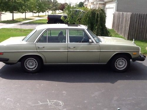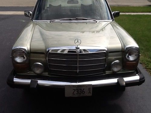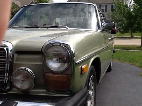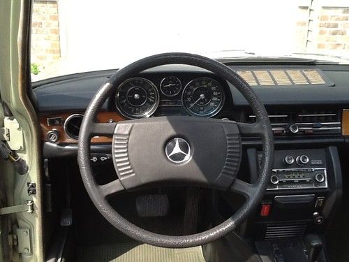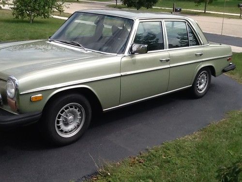 Here is a classic w115 for sale. Its equipped with an automatic transmission, 4 wheel power disc brakes, power steering, power sunroof, power windows, air conditioning, and more. It has about 100,000 miles on it. I bought the with 76K and when driving it home at 60 mph reset the trip meter and broke the odometer. I have driven and enjoyed the car for around 3 years and 30k more miles. The previous owner had the seat repaired, headliner,windshield and back window seal replaced, water pump, and air conditioning converted to 134a with a new compressor and lines. I have installed a new alternator, belts, recored the radiator, citric acid flush, new thermostat, transmission filter and flush, and new trans cooler flex lines. I have new subframe mounts but have not installed them. The car was repainted once the orginal color in the past and still looks good. It's a solid car no rot only very light surface rust in a few spots. The under carriage, brake and fuel lines, fuel tank look great. This car is not a rust bucket I bought it from Tulsa. The car has never been driven up north in the winter and has always been garaged. The vacume power door locks just developed a leak. They work when the car is running but the vacume bleeds off when the car is off. The water drain line for the a/c evaporator leaks some water on the drivers floor and will need to be repaired. So I have not been using the air. It drives great and straight but needs an alignment as it's waring out the out side of the tires. She is great car and with a little love will go for another 37 years!