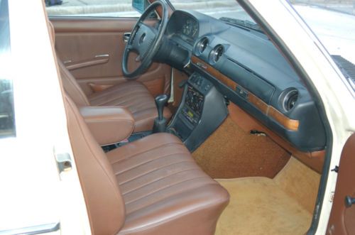 1979 Mercedes Benz 300D 4 speed gearbox. This W123 was in Northern California for its entire life until this year when I brought it to Florida. NO RUST. One small area on the passenger fender well is all I could detect. The remainder of the car is solid as a rock. Originally a 240D, the prior owner removed the 616 engine and installed a healthy '81 617 5 cylinder diesel non turbo engine. I was told the engine mileage was within 10k of the odometer reading. Odometer functions properly. Runs excellent. 4 speed transmission shifts and synchronizes perfectly. Clutch is firm. New brake pads on front. Recent upper control arms and ball joints. Extremely dependable, perfect for daily driving, commuting or cross country exploration. Excellent 30+ mpg fuel economy. A/C blows ice cold!..check out the pic with the 40 degrees at the vent, taken today when it was 80 outside.