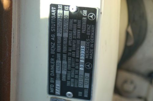 Interior is very nice. No damage whatsoever. Manual climate control, windows, antenna and passenger mirror. Two minor cracks in the dash. Missing the passenger map pocket, but I will include/install a palomino one I have and it can be dyed...or whatever. Analog clock works perfect. As simple and basic as they come. Still has the original first aid kit in the back. This 300D is very presentable, but it is not perfect. I have tried to capture all the "flaws" of the car in the photos. The windshield has a few chips. The paint is still relatively shiny, but there are a few minor dents on the hood, roof and trunk. The sides are straight. The tires are decent but non-matching. Has a good spare in the trunk with all the jacking tools. The central lock system is inoperable, I have it diagnosed as a leaky rear driver door actuator. The truck lock has ben changed and uses a different key than ignition. It works fine, locks, unlocks properly. I have owned several 123's and still have a handful. In my opinion, this is an excellent candidate to invest cosmetic time in, drive or use casually. Would also make an excellent first car for a new driver, being rear wheel drive, four wheel disc brake and full frame with solid bumpers vehicle.. Anyone who knows these cars knows their DURABILITY. Auction offered at NO RESERVE. Keep in mind this car is 34 years old but in my honest opinion..its better than a new car, and will certainly outlive most of them. Buyer to pay 500.00 deposit upon auctions close, with balance due within 7 days. Any questions or if you would like to come and inspect the car give me a call. Please note that all sales are FINAL. This vehicle is being sold AS-IS, WHERE-IS with NO warranty expressed, written or implied. If you have an interest in shipping I can help with shippers I've used. I try to represent what I sell as accurately as possible and to disclose any known defects associated with the car. I do not warranty anything that may or could happen after sale. Any inspections are to be completed before the end of sale, not afterward. Winning this auction does not entitle you to come inspect the car and decide if you want to buy it, but obligates you to complete the purchase! Clear and open Florida title. I appreciate your bids. Good Luck. Dave (407) 716 6212. |