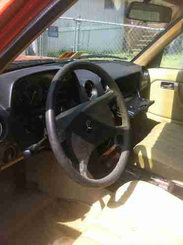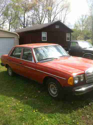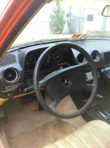 This is a 1980 Mercedes Benz 300D. It is in pretty good shape. Engine runs but has a squeaky belt. Cream colored vinyl interior in decent shape. Sunroof works and I see no signs of it leaking. Passenger rear door will not open. I think it is locked and the tab is broken off. Glove box dosen't stay shut. Is a great project, and appears to only need a little work and tlc. Has a slight break issue as well. Has breaks but not much. Maybe low on fluid. Has a few small rust spots that I see. Have not checked it over great. Any questions feel free to ask.