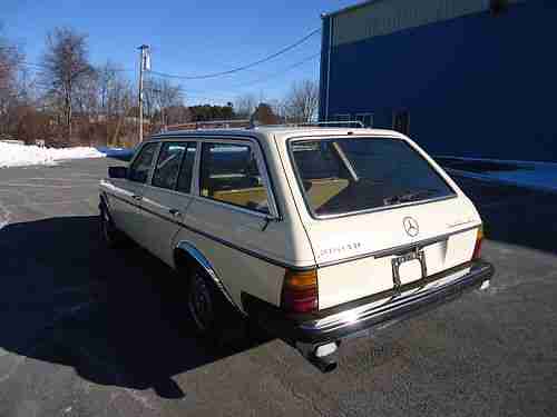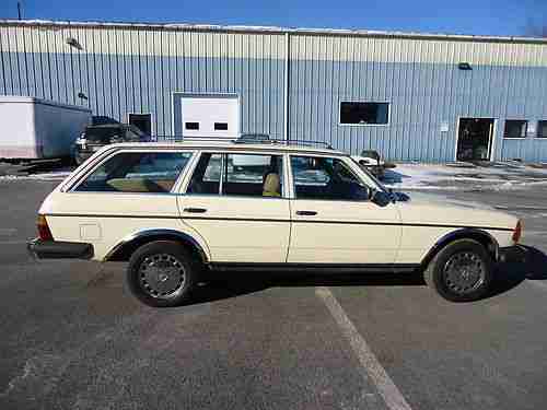WELL SORTED 1981 MERCEDES BENZ 300TDT TURBO DIESEL WAGON, 129735 MI ON THE CLOCK, 2 OWNER FORMERLY SOLD NEW ON THE WEST COAST, CAME OUT EAST IN 2006 AND DRIVEN SPARINGLY THEN LAID UP IN STORAGE, RUST FREE BODY, ONLY A COUPLE OF SMALL BUBBLES ON FRT DRIVER SIDE DOOR AT BOTTOM LIP AS SHOWN, PERFECT UNDERCARRIAGE, PERFECT REAR TAIL GATE, VERY STRAIGHT BODY, GOOD CHROME, SINCE TAKEN OUT OF STORAGE 3 MONTHS AGO, THE CAR WAS GIVEN TO A MERCEDES BENZ SPECIALIST THAT REBUILT ENGINE AND TRANSMISSION, OVERHAULED THE TURBO AND THE REAR AIR RIDE SUSPENSION, FRESH BRAKE CALIPERS ALL AROUND AND FRONT TIE RODS ASSEMBLIES, WELL SORTED, THERE IS A 3 PAGE LIST OF WORK PERFORMED TO RE-COMMISSION THE CAR, CAR RUNS AND DRIVES REALLY WELL, GOOD TIRES ON CHROME MERCEDES RIMS, EUROPEAN HEADLIGHTS, SUNROOF, GOOD BAMBOO INTERIOR WITH GOOD HEADLINER, THIS IS A NICE RIDE THAT HAS A FRESH LEASE ON MANY HAPPY YEARS ON THE ROAD, PLS LOOK AT THE MANY PICTURES POSTED, CLEAR TITLE ON HAND, FEEL FREE TO ASK ANY QUESTIONS, BUYER RESPONSIBLE TO SETTLE AUCTION WITHIN 5 DAYS FROM ITS CLOSE, SHIPPING AVAILABLE TO ANY POINT OF THE PLANET AT BUYERS EXPENSE, NO RESERVE AUCTION, HIGHET BIDDER WINS !! THANKS FOR LOOKING AND GOOD LUCK BIDDING !!!