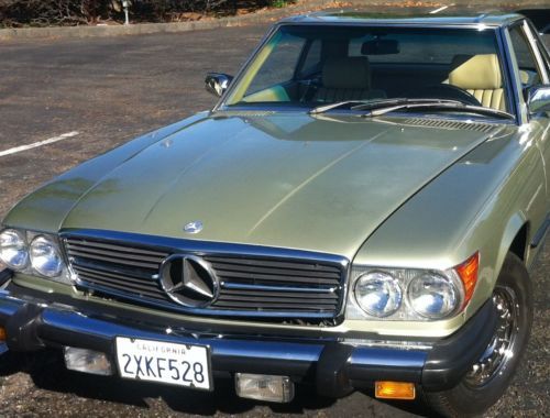 A very clean and well running classic Mercedes roadster with both hard and soft tops. Car has been garaged most or all of it's life so original paint and interiors are in very fine condition. Recent minor work on the engine by Mercedes specialist has it running great. Exterior seagreen paint and interior of car in very good to excellent condition with no body damage; camel leather interior in fine condition; dash and door panels (camel & black) all fine condition; carpets and trunk shows a little use; upgraded Sony radio and speakers; great car for enjoyable rides around town or on the freeway.....