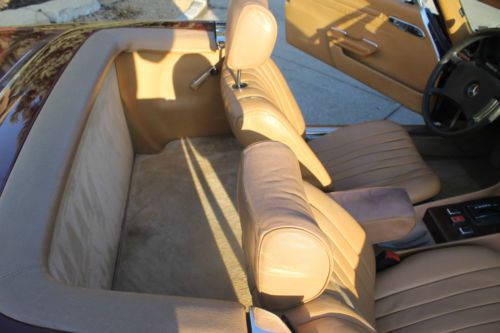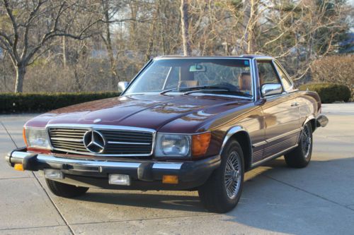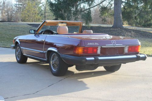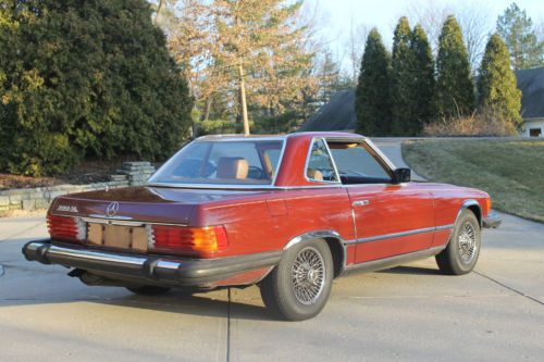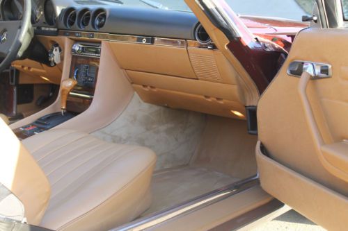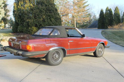 For sale is a immaculate 1981 Mercedes-Benz 380 SL. I am the second owner of this vehicle, I purchased it in 1983, and it has been garage kept ever since. The interior is very clean, and the leather has no cracks or tears in it, the carpet is in great condition, and the vehicle has never been smoked in. The car has the Chinese Red color matching Hard Top with the Hard Top stand. Very easy to put the hard top on and take it off, it also has the factory soft top, with no tears or discoloration anywhere in the top. All of the mechanical aspects of the top are flawless, and the soft top goes up, and comes down very easily. All recommended maintenance has been performed at a regular interval, and there have never been any mechanical issues with the vehicle. Records of all maintenance are available upon request. The buyer of the vehicle will be responsible for all shipping fees, or to come pick up the vehicle, and a non-refundable deposit of $500 will be required upon end of auction. Test drives can be arranged, as well as an inspection by certified mechanics. Thanks for looking, and good luck bidding!