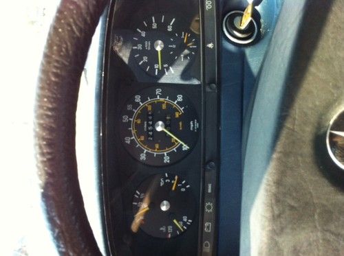 Interior- The blue interior in this car is nice. It always blows me away how 30 year old 300k BMW and Benz leather looks better then 5 year old 100k american cars. The drivers seat has some cracks in one section but no rips. All seats are firm and springs are not broken and the other three seats look like new like most of these old cars. Door panels, carpet, and headliner all in great shape. The dash has numerous cracks in. The Benz shop I bought the 2.88 rear end from (also guys that use to service the car years ago) loved the 4 speed conversion and mentioned that he had a perfect blue dash if someone was worried about restoring it , didn't get a price but thought I would pass on his info.