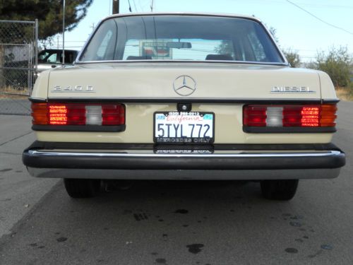 This is a diesel sports car. I started making these turbo stick shift Mercedes in 1993. We have made more then a dozen over the years. Usually our only constraint is finding a good clean car to start with. I have recently come up with this clean California car. It has a clean title and no accident history that I can find or see on the car. It was a one main owner for just about 30 years. I bought it from the second owner because it needed some mechanical work. When I saw how clean the car was I decided to do the conversion. When I started working on the car it had about 252k on the car. The turbo engine that I put in had only 108k. I took it out of the donor car. I have done a bunch of regular reconditioning on the car as I did the conversion. Here are some of the things that I did to the car. Upgraded items from a 240 to 300 radiator entire exhaust bigger oil cooler bigger drive shaft coolant expansion tank air cleaner valve cover breather hose rear differential fan and fan clutch Items that where serviced new clutch, pilot bearing, new oil cooler line 4 new belts motor mounts fog light new clutch master cylinder, clutch slave cylinder shift rod bushings transmission service engine oil service new exhaust header pipe(with flexible part) New rear muffler new paint shift boot shift knob both fuel filters new air filter rear axle new ac dryer with all new oil rings and schreder valves air at 65 degrees alignment stabilizer shocks rear trans support mount hazard switch So I have gone all over this car to make it right. With the parts and services listed above if you where to take it into any Mercedes shop you would leave with about a $5000 bill just because of the amount of work that I did to it. That doesn't even take into consideration the upgraded engine with low miles, (engine value is about 3000 with only 108k). When you add the fun factor this car can be a deal. This car makes any commute more enjoyable. A couple of things that I like about using a 240 body is it has the manual climate control that hardly ever gives any trouble. It also has left and right heat controls. You can also put heat on your feet or the windshield and open the center vent for fresh cooler air. The manual crank window regulators rarely go bad. The other cool thing about this car is the interior is not only above average but it is a less common color. Most of the diesels in this era have tan, or blue interiors, some have black or cream. This color is very uncommon and I like it for that reason. You should still expect about the same fuel economy with this car. Usually I get about 25-28 with a 5 cyl turbo diesel. We have sold hundreds of these Mercedes diesels over the years. Absolutely rust free. Karsten Mercedes only Anderson, CA