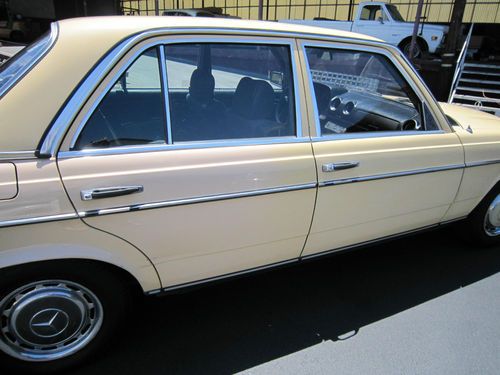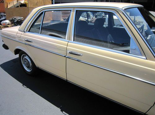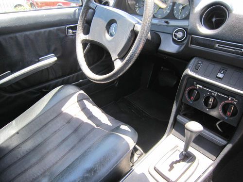 This car is in really good shape for its age. Always garage kept, non smoker, single owner. Body is in really excellent shape with no major damage at all. Paint is still really good with the exception of a few areas namely the trunk and top as photoed. No history of any body or frame damage. Car was never driven hard as it was owned by my grandmother. Interior is pretty basic on this vehicle with cloth seats, manual windows, and no radio. Interior is in fair to good shape but please see photos. Seats are still in good shape with no major rips or damage. A few things might need to be replaced or fixed but nothing major. A once through and a detail should really make a difference. Air conditioning still blows cold! The car runs and drives great. Starts right up and runs just fine. Absolutely no problems with the engine or transmission or anything of the sort. Two years ago the car was gone through and inspected by a master Mercedes mechanic. If you are looking for a comfortable classic car that is pretty much indestructible and still gets over 25+MPG that won't break the bank, look no further. Clean and clear title in hand.