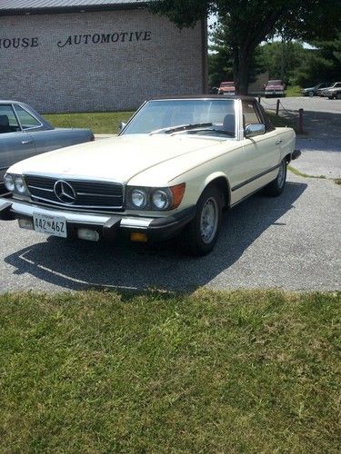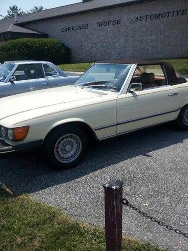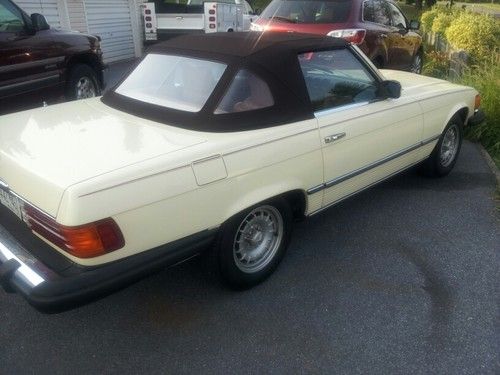 Beautiful 1983 380sl Roadster ! It is tan with a coffee brown top and light brown interior. The car has no rust and the original paint is almost perfect. The convertible top looks immaculate as well with no rips or tears of any kind. I also have the hardtop that goes with the car. It has 80k miles, runs great and is ready to go for summer. Please email or call with any questions 301-748-5434.. The car is for sale locally so auction may end at anytime. The car is being sold as is with no warranty so you should check it out personally if you have any doubts. Shipping needs to arranged by the buyer but I will help as much as possible to accommodate.