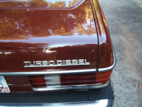 1984 Mercedes-Benz 300 Turbo Diesel 4 Door Sedan Only 216,000 miles, Great Diesel Engine good for another 200,000 Beautiful Maroon Color Excellent condition, inside and out, very few flaws Driven Regularly, Garage Kept New tires on Chrome Rims New Front end , New Battery Call 404-434-2286