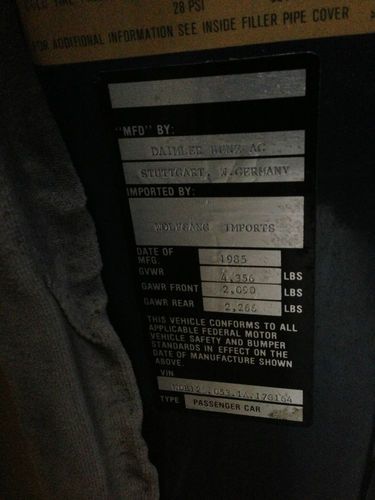 1985 Mercedes-Benz 280ce 300 series coupe. This is a European import and this engine / chassis was never sold in USA for model year 1985. This car has 135,750 miles and is 28 years old. It is in good condition, but it is not perfect. I've contacted Mercedes-Benz classic and they have provided the following build information: shipped 7/26/84, Lapis Blue Metallic paint, quartz cloth interior, and the following options: