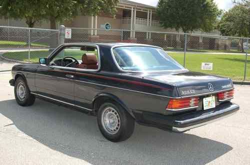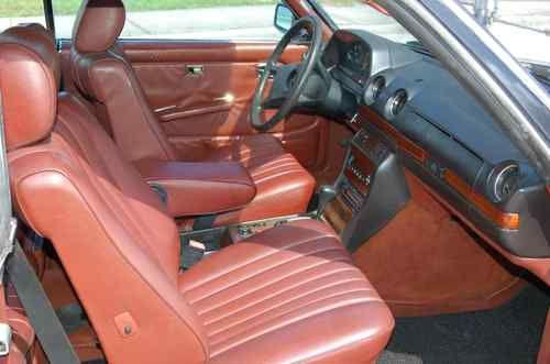 1985 Mercedes Benz w123 300CD 2 door coupe. VIN WDBAB53A4FA251637. Very rare. There were only 1291 300CD turbo coupes built in 1985. It was also the last year of the W123 series. 2:88 rear differential..watch the included video..and the tachometer and speedometer contrasts. 181,XXX miles on a working odometer. The drive train consists of the timeless 617 3.0 5 cylinder turbo diesel. Cast iron cylinder head mounted to a cast iron block. Indestructible. Very clean W123 coupe. New or replaced in the last 6 months: 1. Uniroyal Tiger Paw 205 75 14 tires. 2. A/C compressor, new not rebuilt, blows cold. 3. Every "o" ring replaced in all the high and low pressure lines. a/c receiver dryer, expansion valve.A/C belt. A/C blows 4. A/C receiver dryer 5. Expansion valve 6. A/C Belt 7. Sunroof felt. 8. New hood pad 9. New O.E. windshield gasket 10. New antenna mast/original Hirschmann antenna and seal 11. New air cleaner bracket with bushings Recent valve adjustment and new valve cover gasket. Engine runs excellent and does not burn oil. I estimate the fuel mileage at 28 mph highway. Everything works: All windows. Cruise control, sunroof, central vacuum locks system, odometer, 4 speed automatic transmission shifts flawlessly (again watch video)..shuts down on a dime. Both sunvisors work properly, vanity lights fully functional. Clock works, keeps accurate time. Aftermarket Nakamichi CD-45z CD player operates properly. Passenger power mirror doesn't adjust completely electrically but will adjust manually. Henna interior. Firm seat springs. Dash is almost completely crack free, 2 minor cracks up near the windshield and another near the passenger speaker, not really discernible. Vehicle comes with original unopened first aid kit, complete tool kit and owners manual. I have a clear and open title for the car. it is not a show car it is a driver
