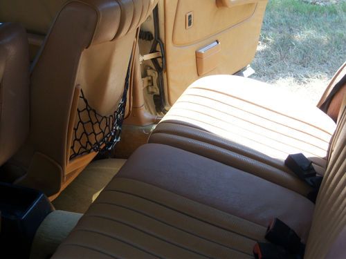 Inside the vehicle the wood trim is pretty good, with some varnish peeling. The floor mats are in excellent shape, the seats do not need recovering, the carpeting in rear is fading to a pinkish tint, the two rear pillars trim is gone, and some of the door trim is wrinkled from the Texas heat. All door and window rubber is serviceable. Windows have been tinted, and tint is good. Air conditioner is still the R 12 system and cools well. Heater is good, all windows roll up and down as they should. Original tool kit and first aid kit are in place, as well as many of the original books and records. I am probably missing something, but...