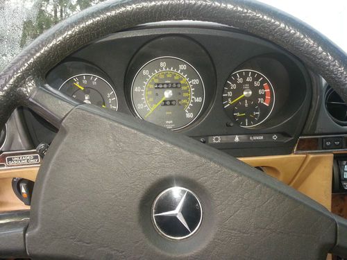 You are bidding on running driving registered 1985 Mercedes 380SL. The car has new intermediate muffler needs a new exhaust gasket. Runs and drives well. It does have a skip in the motor when cold. No knocks or ticks. Transmission shifts fine. I still drive it on occasion. Car was repainted before I got it. Looks good but has chips and minor scratches. Some rust starting in a few places. Worst is small area behind drivers rear wheel. Trunk and floors are solid. Rockers are solid.