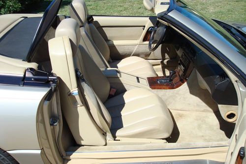 300 SL convertible, fun to drive, very solid road car. Gold exterior with tan interior and brown soft top. Manual operated convertible top only - no hard top. New AC controller and blows cold.