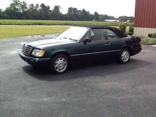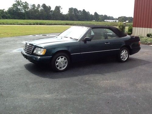 1995 Mercedes Benz E 320 Cabriolet. Southern car - no snow damage! 118,000 miles, original style new soft top, new front seat leather, top hydraulics rebuilt or replaced; new Air Flow Meter, and more. The left drivers head rest and the telescoping steering column are inoperative; there are no fluid leaks; everything else works. Car runs and drives great!