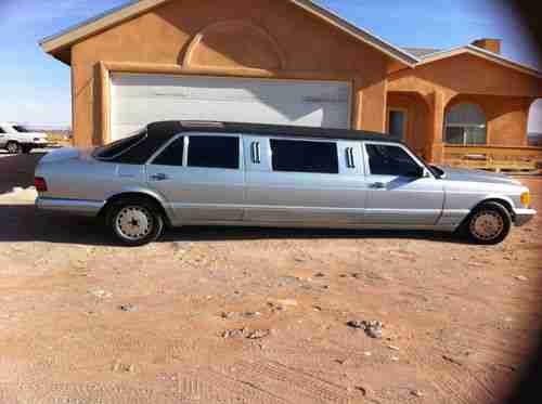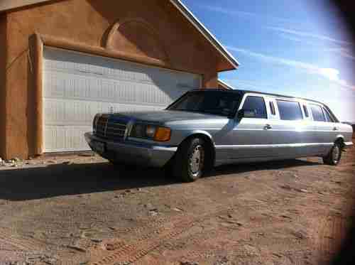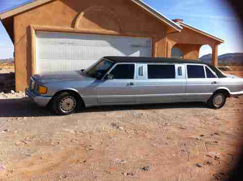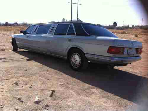 1989 Mercedes Benz W126 300SD Stretch Limo. This car started out as a 420SEL that was converted as a new car to a stretch limo. It was then converted in 2009 to a turbo diesel using a 300SD as the donor car. It was then fitted with a dual tank vegetable oil conversion, allowing it to run on diesel or vegetable oil. In 2010 the color was changed from black to silver with a high quality two stage paint job. This last year it was in involved in a fender bender, which "salvaged" the vehicle, but it has been repaired. The A/C does not work, and the passenger air bag has been deployed. The rear facing, rear bench seat folds into a bed at the push of a button. Glass and solid divider can separate the front and back of the car, at the push of a button. This car runs and drives very well. It is currently registered with a Texas title, and located in El Paso. Delivery can be arranged to California. Call Frank with any questions at 8057201401