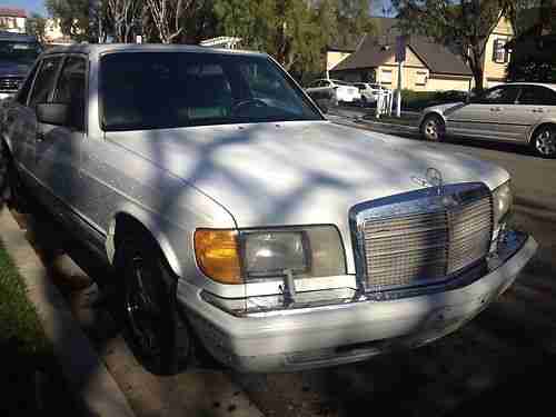 In very good condition 1990 Mercedes 300 SEL California car that has never seen snow in its life, the car runs and drives like a dream,the sunroof does not work,on of the rear windows does not work rear driver side,175,800 miles, the engine drives perfect ,has an oil leak, the ac does not work, the exterior paint is gorgeous and 100% original and never been in an accident,the interior is in very good condition except for a tear in the driver seat bottom cushion that has been covered,it has brand new tires ,brakes,fuel pump,and spark plugs and a new oil change.