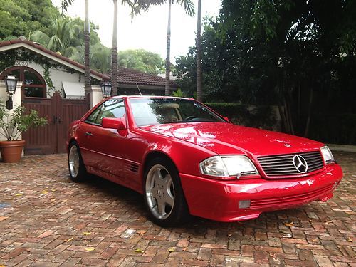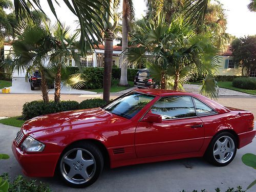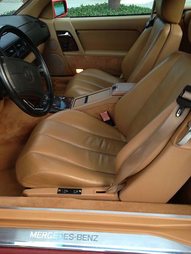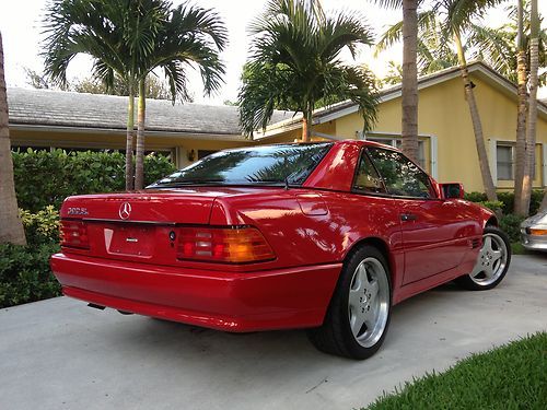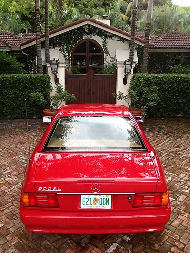 For your approval ! 1991 Mercedes Benz 300 SL Roadster! Impeccable!!! Original Purchaser , a Palm Beach Gentleman June of 1991 to May 2003. I then Purchased it for a very particular German Couple in Pompano Beach Florida. The Car's original garage was in a $8,000,000 home with a climate controlled garage. The owner was extremely meticulous including a fully documented service booklet! The second owner, then garaged this amazing car and kept it in peak condition, using it as a dry weather occasional toy, only 11,000 miles in 10 years on it. The protective factory coating on all rubber and metal is still there. The hydrolic top solenoids are replaced, usually a very costly job. New tires and new Mercedes SL sport package wheels. This Signal Red color is the better of the two red's available, it is a blue red, not an orange red. The rare interior color of "Date" tan is beautiful and in amazing condition. The canvas top is black and still perfect. The hard top is never used and like new! There is no show of wear or age on the car , but one exception, the lacquer by the drivers side window switch has a couple hairline separations. There is a Pioneer Premier Cd /radio/ipod connector radio in dash, but we have the factory radio still also. If I didn't have 7 car's already I would keep this car! A lot of people embellish there add's with overwhelming verbiage, but This car is absolutely a show car!! I know of a shipping company that can to transport the car anywhere. This car is located in Palm Beach Florida ad is being sold locally! Please feel free to call me for more details, Chris 561-301-1733