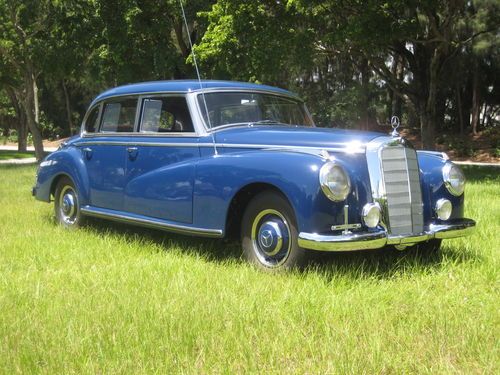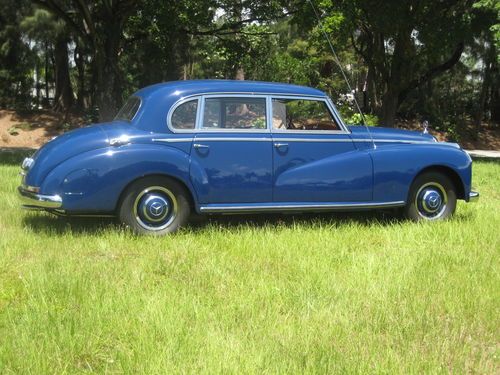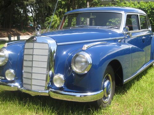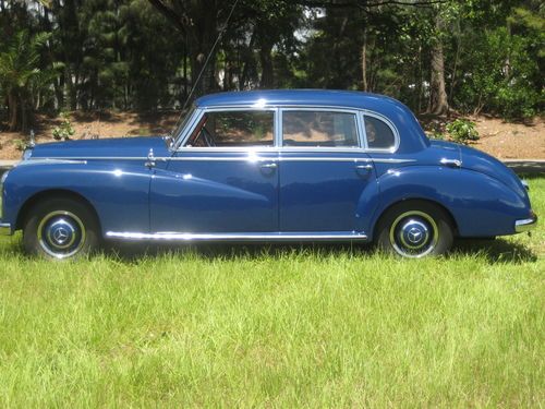 Thanks for checking out our listing on this Amazing frame off restored 1952 Mercedes 300.This Stunning Mercedes is offered for sale for the first time after undergoing a frame off nut and bolt restoration.This Mercedes is just stunning with everything replaced or refurbished and ready for the fortunate new owner to drive and enjoy it in all its Glory.This project started out in 2009 with a rust free highly optioned out 300 sedan from California with the previous owner having the car from 1974 to 2009 at which time it came to Florida for us to undergo this fabulous restoration.This 300 had all the options,dual spare tires,radio,ashtray and drivers side mirror.This is a numbers matching car with all the mechanicals completely rebuilt,fresh overhauled original 3.0 straight six cylinder engine with less than 500 miles,new clutch and pressure plate,new rear end,new complete new brake system,brake booster and cylinders,gas tank refurbished and sealed,everything is basically new.This 300 was completely dissasembled and i have lots of pictures of the restoration.The 300 is painted its original Mercedes 320 Blue Glazure and before the paint was applied every panel was sandblasted seperately and prepped to perfection including all the inner fenders and inner bumpers sprayed with single stage black paint to prevent any type of rust so this Amazing cars finish will last for years to come.The interior has all been redone as well with factory seat covers from GHH,wood all refinshed,new headliner and insulation as well as most of the chrome being rechromed and there is a lot of it just the radio chrome trim breaks down in to 19 pieces.The glass is all original with all the windows rolling up and down with ease unfortunately there is a small chip in the windshield please look at the pic carefully.This 300 runs and drives excellent as new with everything working as it should with the exception of the radio everything else works gauges,3 original horns,headlights,tail lights,blinkers,gauge lights,clock,heater and wipers.This 300 comes with its original owners manuals as well as the factory Mercedes stamped tools in the trunk. There is just way to much to list but we will let the pictures speak for themselves there are a few pieces of trim that are still original please look at all the pictures carefully .This 300 has a clean and clear Florida title with it matching the frame numbers as it should be done to have it correct.Florida residents must pay 6% sales tax and tag or transfer with no dealer fees.The fortunate new owner must arrange transportation we will assist any way we can with storing and loading.This Mercedes is sold as is but Please take time to read our feedback and bid with confidence,feel free to email me with any questions or offers,thanks for looking and good luck!!